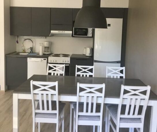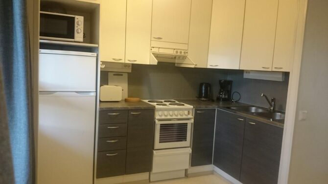 The apartment is located in Kotila on the shores of a forest lake. The complex is a two-storey wooden houses with balconies and a separate exit from each room. The interior is decorated with wood, which is typical for Finnish village houses. The apartment has a sauna, a shared kitchen, a living room, a dining room and 3-4 bedrooms. Free parking is available on site. There is a grill and barbecue area. The picturesque surroundings have a leisurely rest. Here they fish, walk, ride bicycles and skis, there is equipment for water sports. Meals are organized independently. For cooking and eating has everything you need. The nearest bus stop is 350 metres away.
