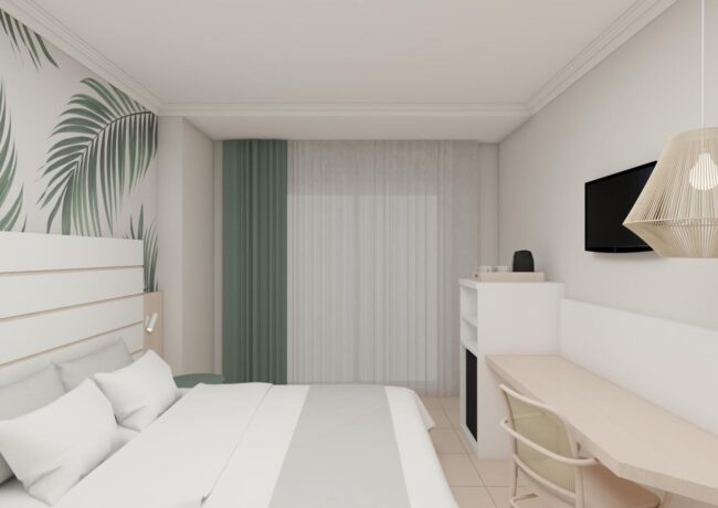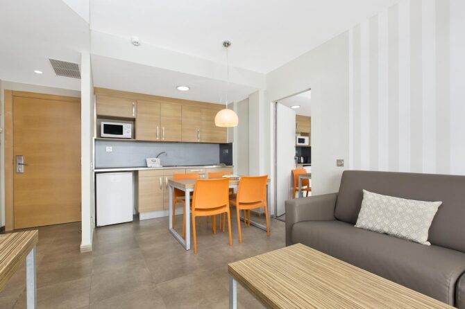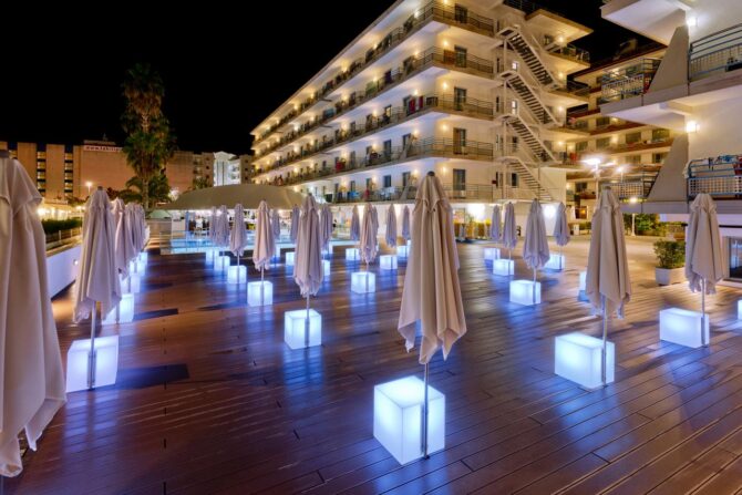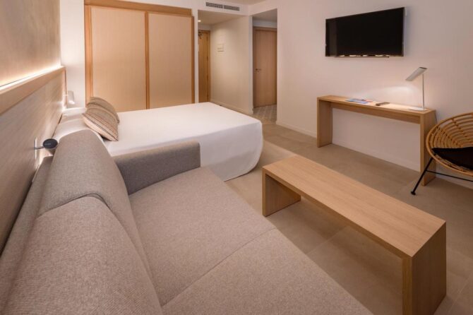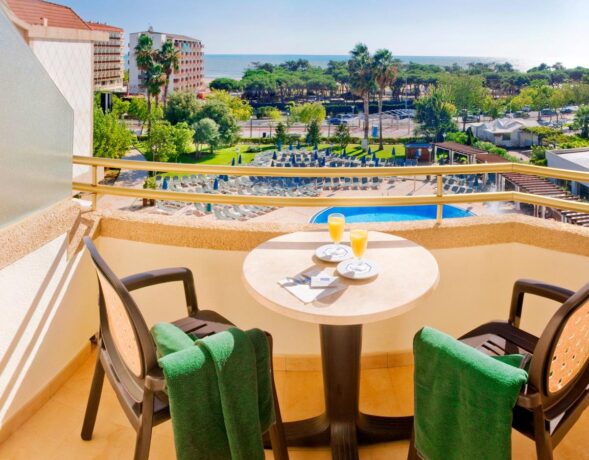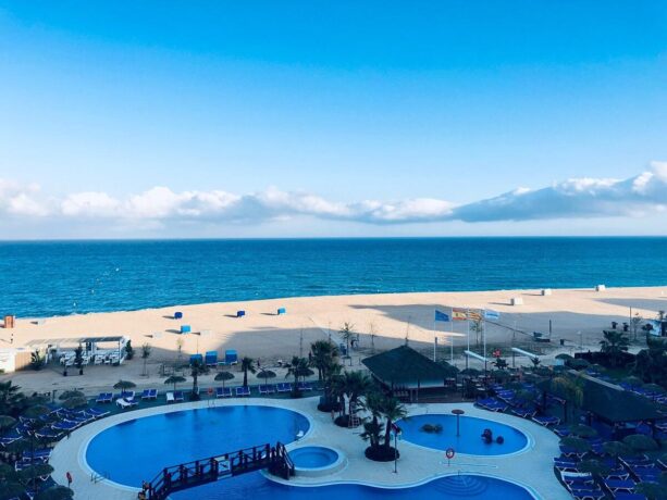 The hotel is intended only for adult guests, so we love romantic couples and newlyweds. ALEGRIA Mar Mediterrania is located on the seafront, the main beach within walking distance. The rooms are represented by modern apartments with terraces and climatic equipment. Most of the windows of the hotel building overlook the beach, guests can admire the Spanish sunset every evening, sitting in a soft chair with a glass of wine from local producers.