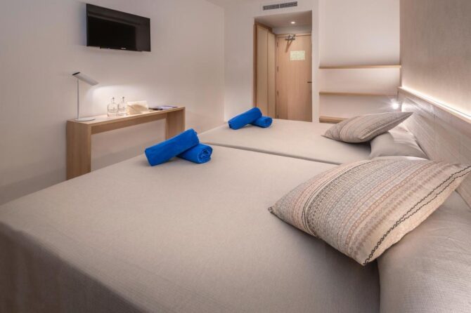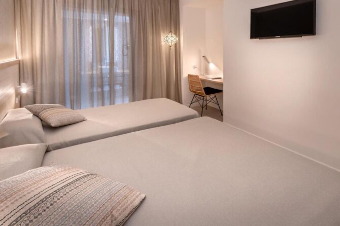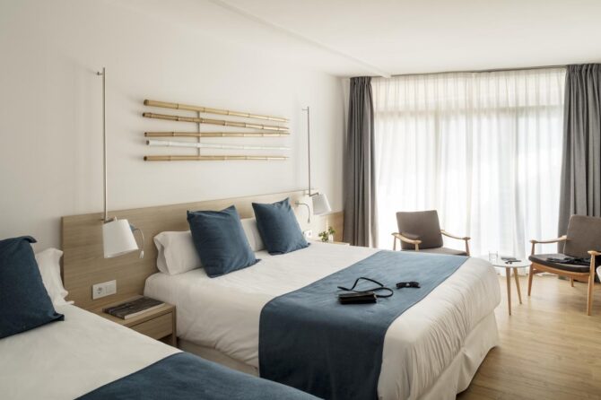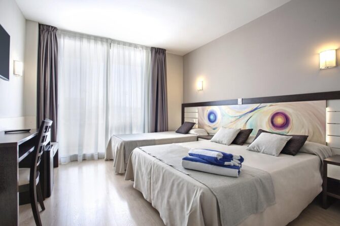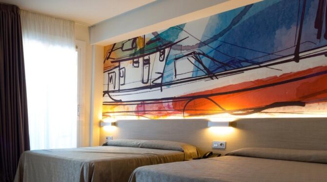 Hotel Riviera is located on the second line of Santa Susanna’s promenade, walking to the beach about a hundred meters or 5 minutes. The rooms are large, rooms of different capacities are equipped with a furnished balcony, modern furniture and air conditioning. The rooms are simply decorated and minimalist.