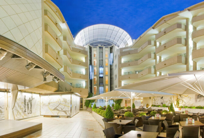 Meals are organized in the hotel’s restaurant on the “all inclusive” system. Mainly Serve Mediterranean cuisine. During the day, guests can enjoy snacks and drinks at the snack bar. Within walking distance of the city center with many shops and catering outlets for every taste.