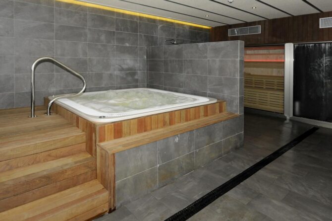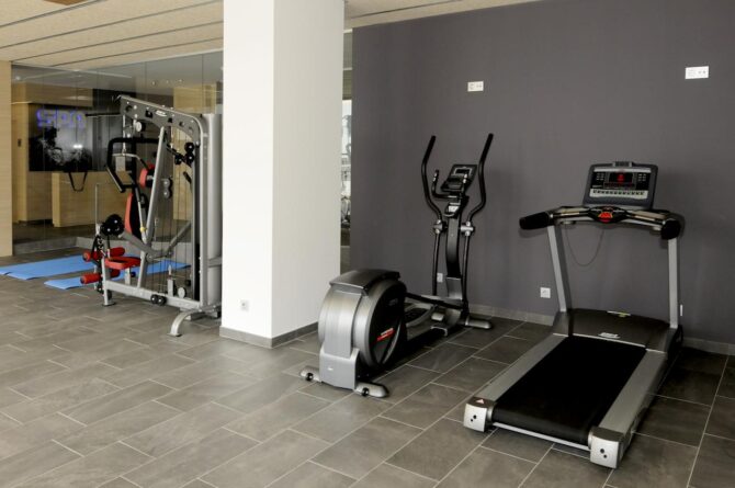 In addition to the swimming pool with heated sea water, the infrastructure of the hotel includes a fitness center, a sports area with exercise equipment, a wellness complex Aquamarina Wellness & Spa.