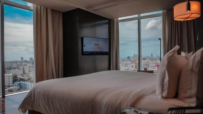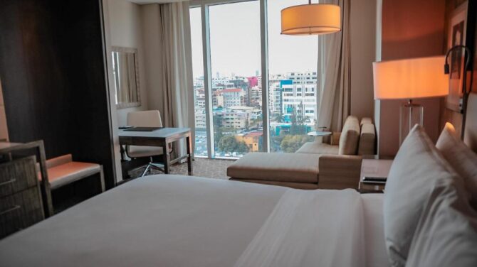 The JW Marriott Hotel Santo Domingo is not a new hotel, it was opened in the early 2010s. Naturally, the huge popularity of the rooms played a cruel joke with the hotel: polished and glass details were covered with scratches, some decorative elements and functional details (for example, plumbing accessories) should already be changed. However, the networker keeps the brand: