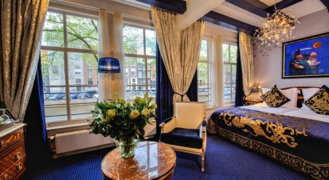 The hotel is set in a historic building, right on the banks of the Amsterdam Canal. The views from the rooms are magnificent. On the territory of the hotel there is a cozy bar and restaurant, there are smoking areas. A shuttle service to the airport or train station can also be arranged here.