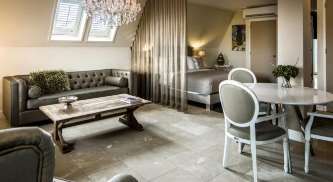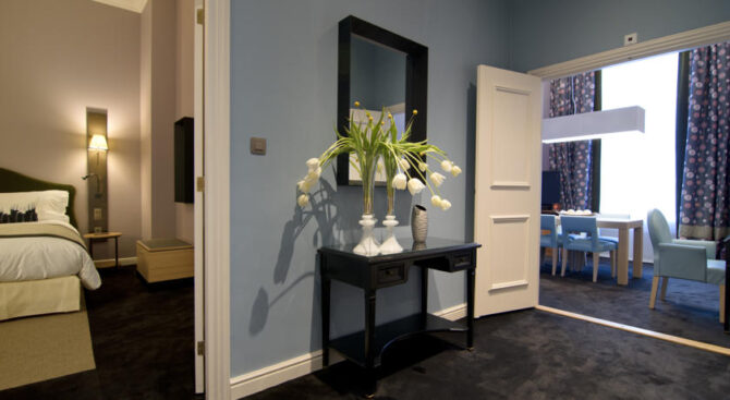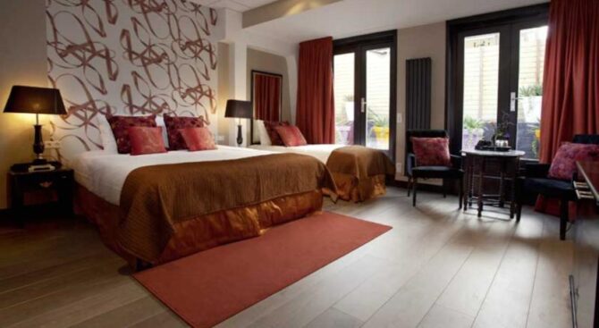 Luxury Suites Amsterdam is located in a typical area of the city, but on the banks of the canal. Guests can check into spacious suites of different sizes – 50-90 sq. m. Only one bathroom in such rooms occupies 10-20 sq. m.