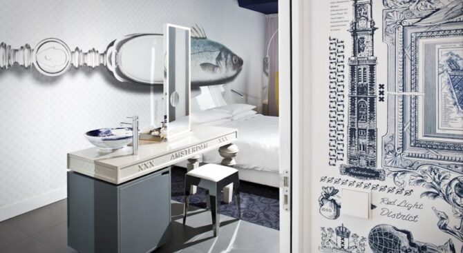 Opposite the main train station is the arthotel art’otel Amsterdam,in the heart of Amsterdam. On the territory of the hotel there is a bar and a restaurant where you can eat deliciously and have an interesting time. There is also a library, a lounge bar and an animation gallery.