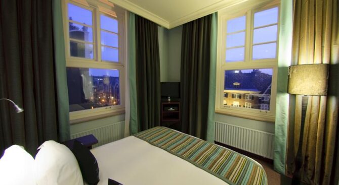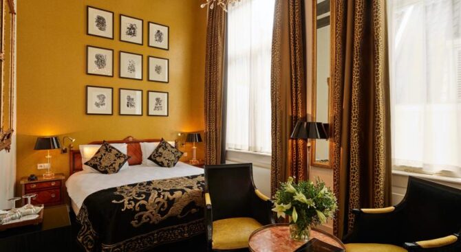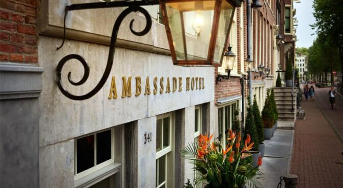 A huge hotel in the center of Amsterdam Ambassade Hotel is located in 10 old mansions, which were built in the XVII century. This is a unique hotel, made in the old style, only here guests can visit the bar-library, where there are more than 4 thousand books with signatures of authors.