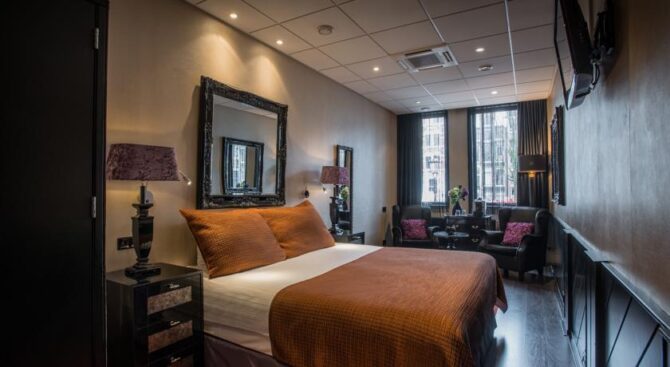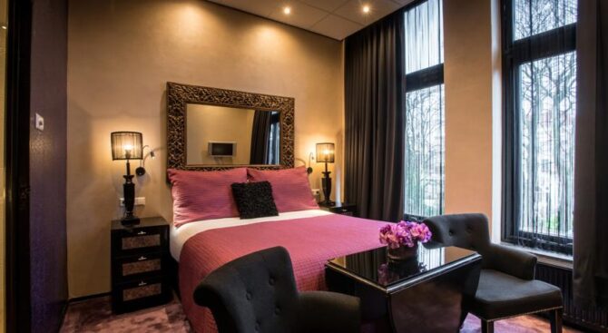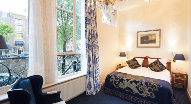 Hotel Esthera is located in the centre of Amsterdam, along the Singel Canal. It is made in a classic interior, the design uses antique furniture and wooden panels for decoration. Each room of this hotel is special and different from the others. Guests can check into single, double and triple rooms with all amenities. There is internet, TV and all bathroom and shower accessories. From the windows there is a beautiful view of the canal, all rooms are made in the style of romanticism.
