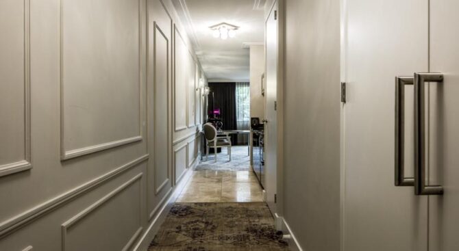 The rooms amaze with their luxury, all the furniture here is designer, made in the style of Louis 15. Some rooms are decorated with works of art of the middle of the last century.