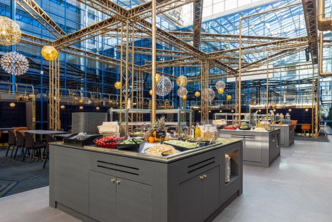 The Clarion Hotel is well located for its convenient location. Helsinki Airport can be reached in 10 minutes by train or bus, and the centre of the Finnish capital in 30 minutes. Despite the large number of tourists in the country, there are no problems with free rooms in the hotel, since there are 425 of them.