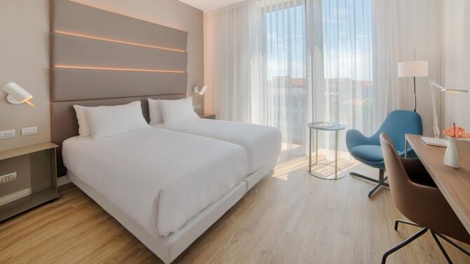 | NH Venezia Rio Novo | 8 | Стандартный Superior Junior Suite Для семьи | Сейф Напитки Кабельное Чайник | Конференц-зона Прачечная | От 200. Ребята до 12 лет – бесплатно | Платно, по запросу |