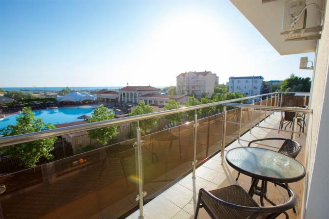 Hotel Gala Palmira | 6,9 км до аэропорта Витязево. | Стандарт Комфорт Люкс | Телевизор Телефон Кондиционер Фен Звукоизоляция | Бассейн Мини-бассейн СПА Массаж Сауна Игрушки у бассейна Аниматоры Аквапарк | Цена номера за ночь – минимум 35 EUR. | Нет. |