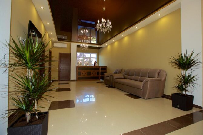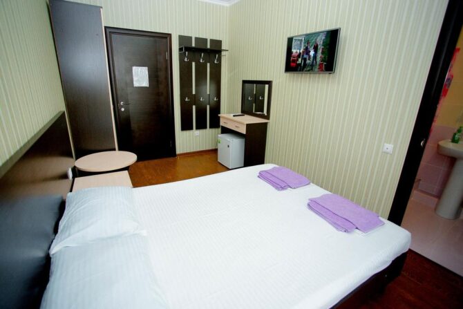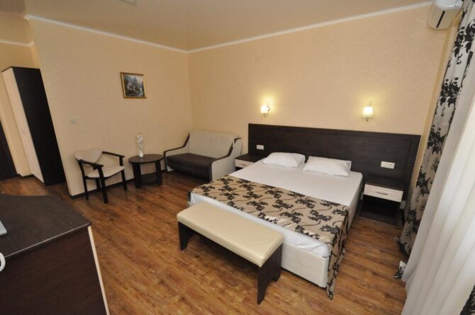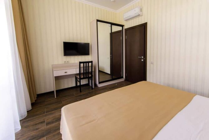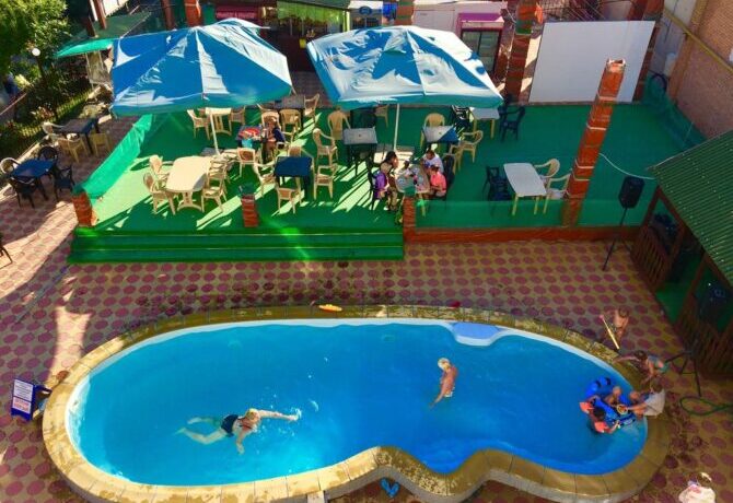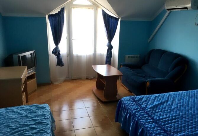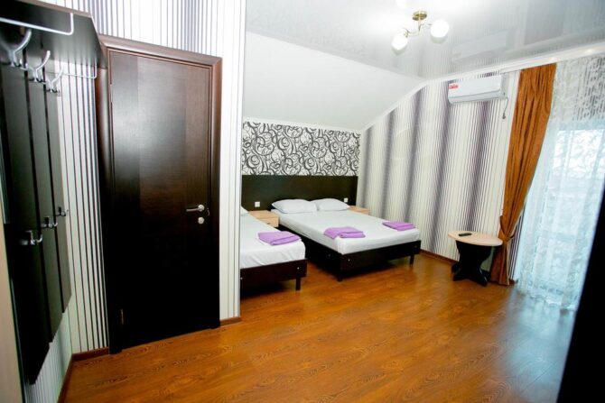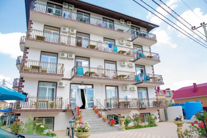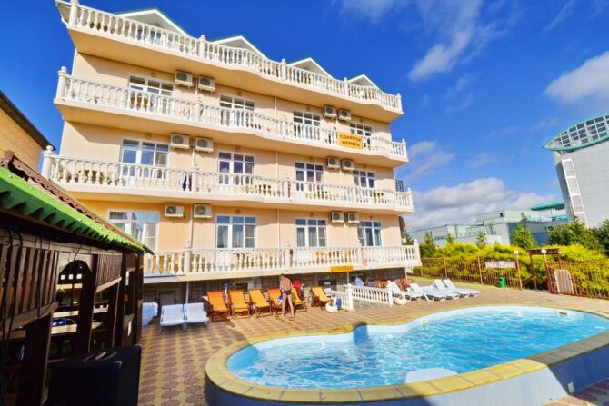 From the main boulevard of the village to a small private hotel can be reached on foot in eight minutes. The location of the hotel is very convenient – directly opposite there is a public transport stop, from where you can get to the center of Anapa.
