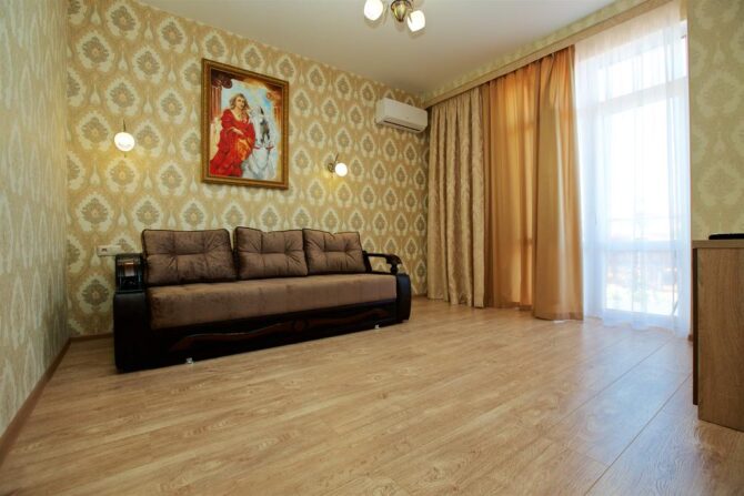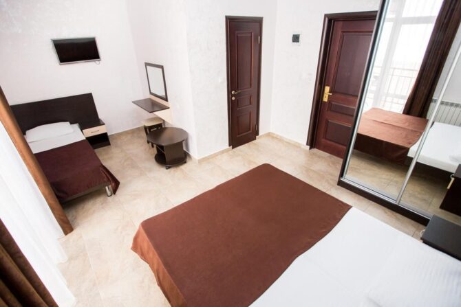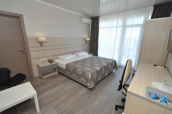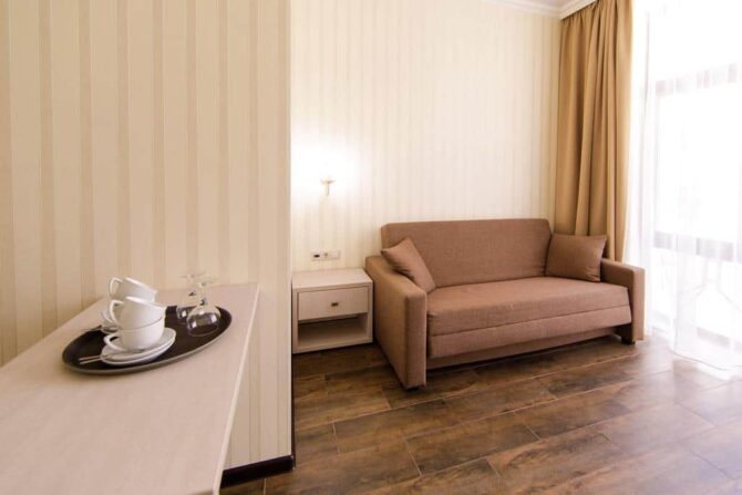 The spacious rooms of the hotel can accommodate even six people, extra beds are also provided. The complex has apartments of several categories: standard and luxury. Guests can choose from the view from the room window.