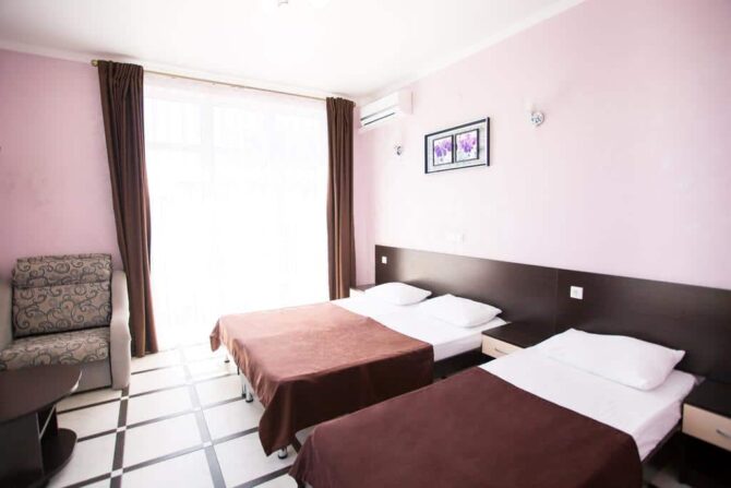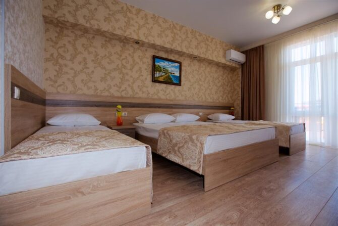 Отель Атлантик | 6,2 км до аэропорта Витязево. | Двухместный номер Трехместный номер Четырехместный номер | Мини-бар Телевизор Кондиционер Радио Телевизор Звукоизоляция | Бассейн Детский бассейн Аквапарк Велоспорт Бадминтон | Цена номера за ночь – минимум 30 EUR. При размещении детей до 12 лет на дополнительных кроватях – 4 EUR за ночь. | Нет. |