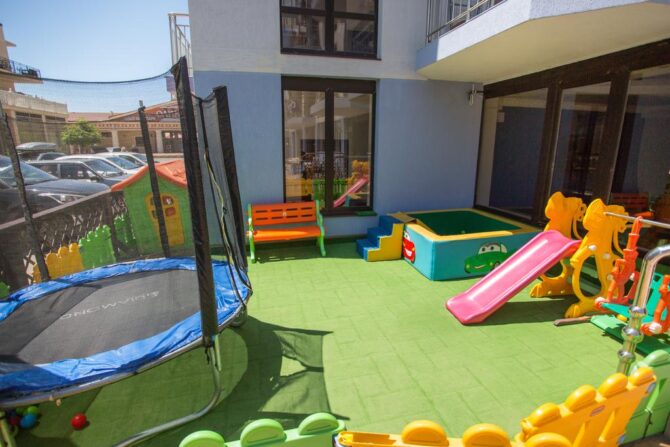 Nearby there is a water park and a private beach. If parents want to spend time separately, they can resort to the services of a nanny (only qualified employees work in the hotel).