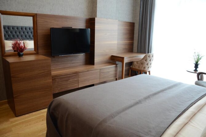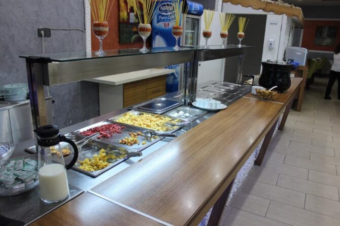 The hotel’s restaurant serves delicious dishes of different cuisines. Buffet meals include fresh pastries, vegetables, fruits, national dishes and sweets. Drinks can be enjoyed at the bar, which offers a wide range of guests.