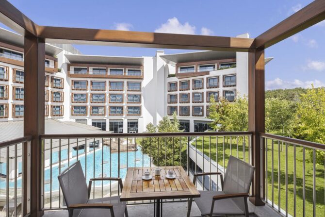 The hotel is adjacent to the airport building. Unfortunately, you can’t just go there due to ongoing construction, but they do provide a good shuttle service straight to the front door. The staff are friendly, the rooms are clean, the facilities are new enough. Breakfast and dinner the night we arrived was good. We did not expect a beautiful picturesque place. A great choice if you want to see Istanbul in transit
