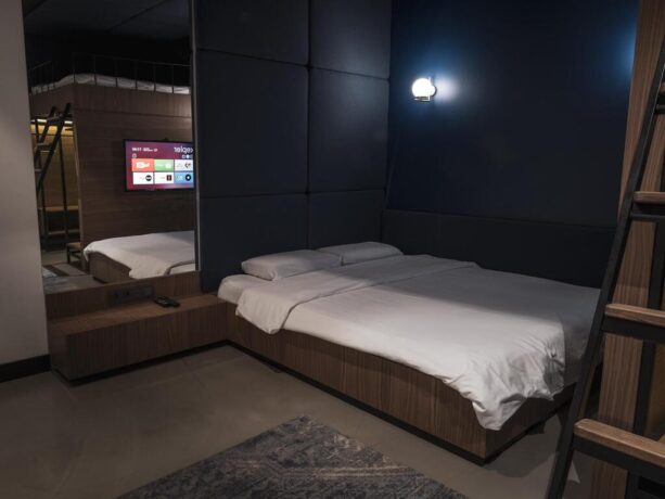 The capsule hotel welcomes guests a few steps from the airport, in the Asian district of Istanbul. The famous Column of Constantine and the Maiden and Clock Towers are 20 minutes away by car or 37 km away. At the entrance of guests waiting for around the clock reception. Upon check-in, the friendly staff will offer the guest a meal and drinks in a capsule. The room has air conditioning and a TV, you definitely will not be bored. Each room at the capsule hotel has a wardrobe, but the bathroom is shared.