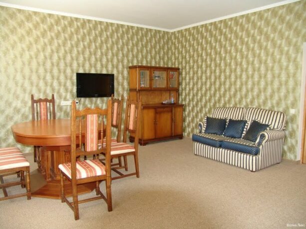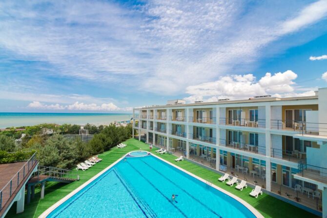 “Drop of the Sea” has comfortable rooms, well-groomed sandy equipped beach and solarium. Guests can relax in the swimming pool, on the sports grounds and during everyday entertainment activities.