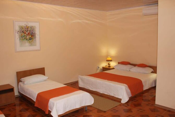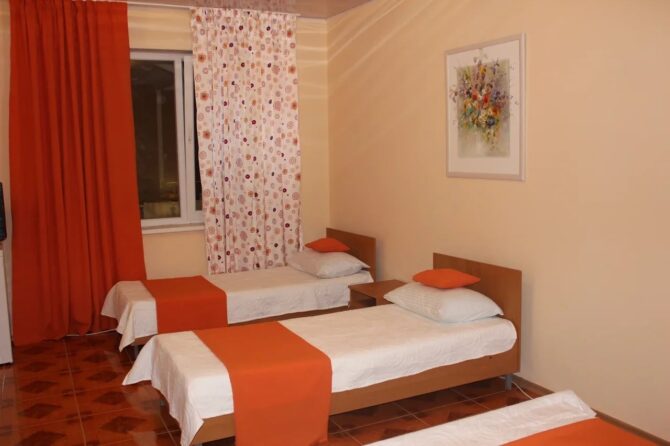 The rooms at Mango Hotel have all the amenities. From June 15 to August 31, the price includes 3 meals a day. At other times, you will have to pay extra for it.. Cozy courtyard, swimming pool, programs with animators, barbecue, free parking – all this is located on site.