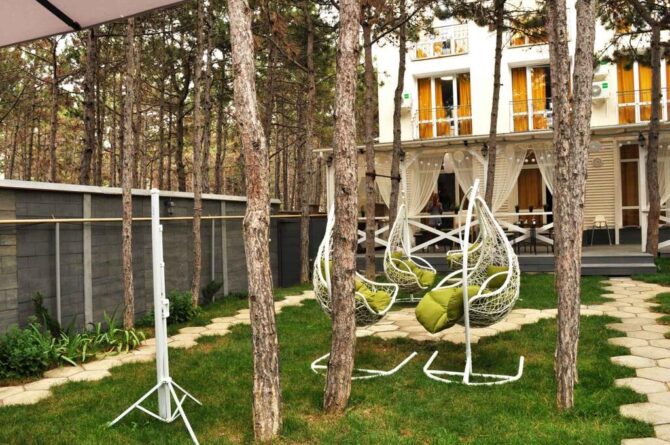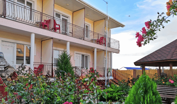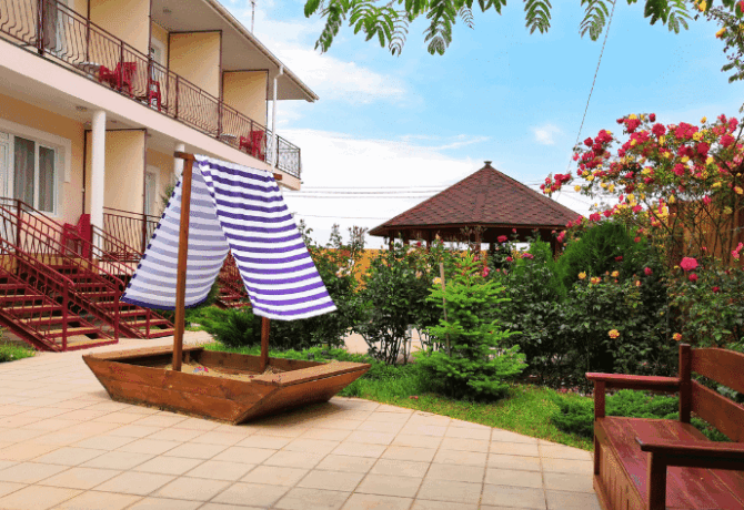 Private hotel “Uyutny Dvorik” is located 150 meters from the Black Sea coast in a quiet area, no one will bother tourists. On the territory there is a private courtyard where you can relax in the evening and cook on the grill. There are also gazebos for a more comfortable stay.