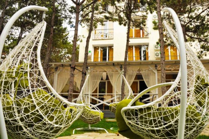 In the village of Peschanoe there are many hotels of various categories. If you want to relax “Without leaving the hotel”, it is better to choose the sanatorium “Chernomorets”, and if you want peace of mind, you can stay in the hotel “Mango” or “On primorskaya 4”.