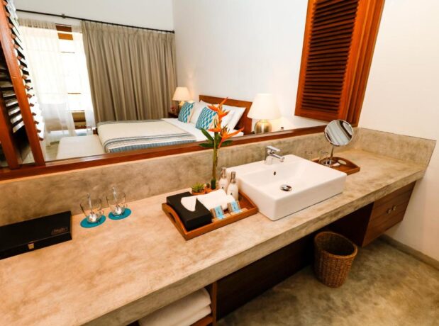 Tourists who are used to additional entertainment will like Salt Mirissa. A team of professional animators works here. In addition, the hotel is located near the main attractions of the resort – the bay and the beach of Weggambey, from where it is convenient to observe the life of the blue whale family. Deluxe Doubles with balcony or private terrace are available. There is no swimming pool on the territory, and it is not needed. From the sun loungers installed on the lawn, just a couple of steps to the ocean. At the restaurant international dishes are served. At the buffet, everyone will find their usual food. If desired, you can rent a skewer or barbecue grill and cook your own dishes on the coals. The hotel offers water sports equipment, bicycles and fishing equipment on site. There is a diving centre on the beach. Tour arrangements can be arranged at reception, and the receptionist can arrange car rentals.