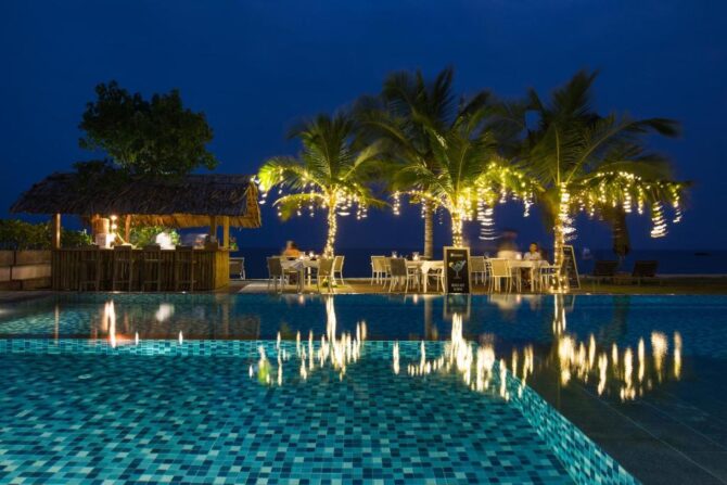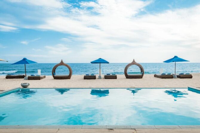 Villa Ubuntu Beach Villas by Reveal is a 5-star mini-stay. Its two-story houses are located on the very shore of the ocean. Each of them has 4 rooms. At guests’ disposal there is an outdoor swimming pool, a private beach, a sun terrace, a barbecue area, a lush tropical garden. In the morning, a shared breakfast is served in the main dining room. Meals can also be enjoyed on the poolside terrace. During the day, guests are invited to the bistro “Lantern@71 Bistro & Bar”, which is located in the neighboring villa. Meals are served here in the open kitchen. It offers vacationers – SPA-salon, canoeing, organization of excursions.