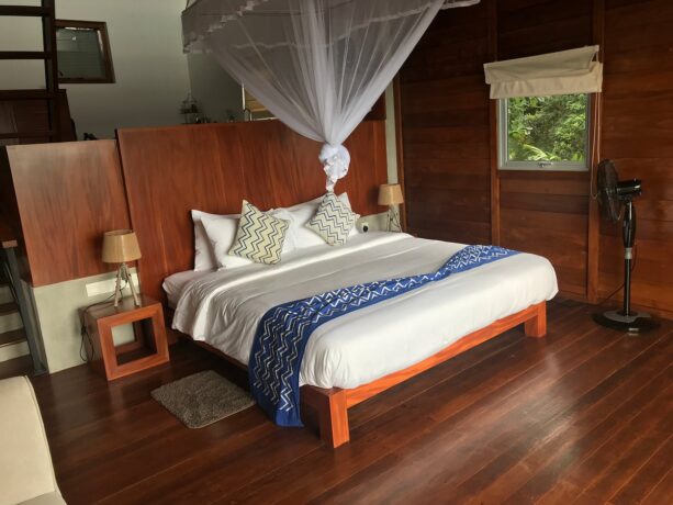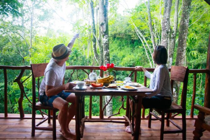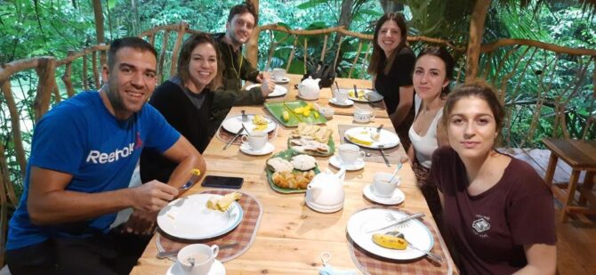 The owner built 3 houses on trees in the rainforest, but at the same time close to the city (5 minutes walk). Only natural materials are used in the decoration, and the rooms are always well cared for. Guests are treated warmly in a friendly way, they try to diversify leisure and feed the most delicious dishes. Unforgettable impressions remain from gatherings on the balcony for breakfast and acquaintance in nature in its most vivid manifestation: monkeys, mongooses and even deer.