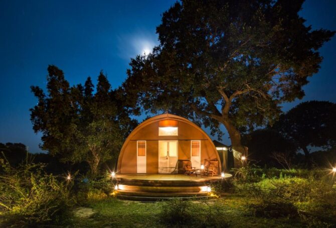 Hotel complex near the village of Yala, 20 minutes from the Buddhist monastery of Situlpava. As a bonus, guests are offered a trip to the Yala National Park to admire the wild animals of Sri Lanka: a jeep safari. Snacks for the day and water are also included in the offer.