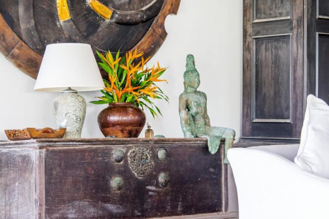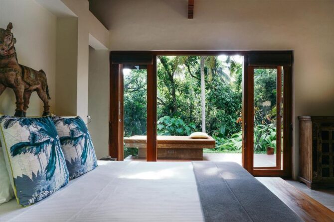 The villa is located among a garden of flowering shrubs and tall trees, creating a cozy refuge for those who decide to hide in their shade. This is a real world of wildlife. In the private garden, guests can see peacocks posing, curious monkeys or other exotic fauna.