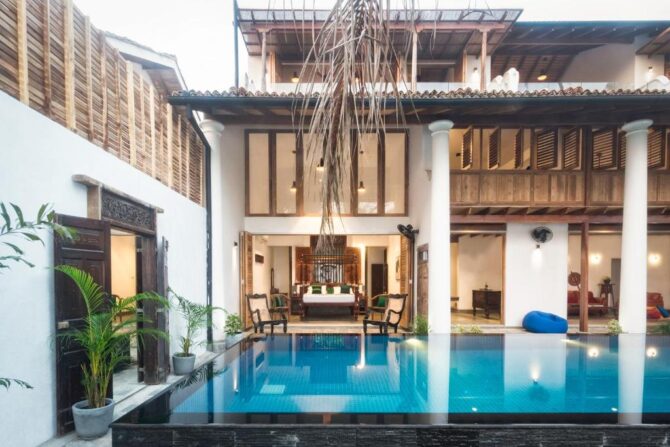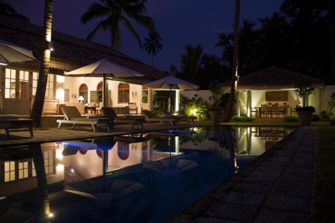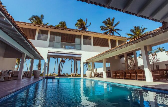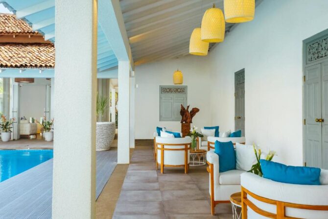 The stunning villa “Khomba Beach House” is located on the west coast of Sri Lanka. This place is great for a quiet pastime, and for active recreation. The villa is conveniently located and offers a wide range of services – round-the-clock room service, check-in and check-out at any time of the day or night.