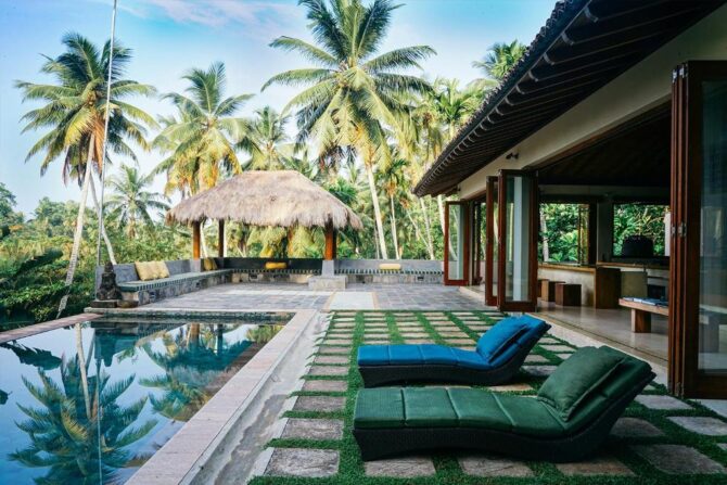 The large house has two spacious bedrooms with king beds made of natural wood. High-quality bed linen and comfortable mattresses will ensure a strong and carefree sleep. Each bedroom has access to a private terrace. A perfect addition to all this luxury will be a private garden, fenced with a wall from prying eyes, and an outdoor pool. By booking a villa, guests find themselves in their own secluded world with a green jungle curtain. It is here that you can feel the harmony between artificially created luxury and the beauty of pristine nature.