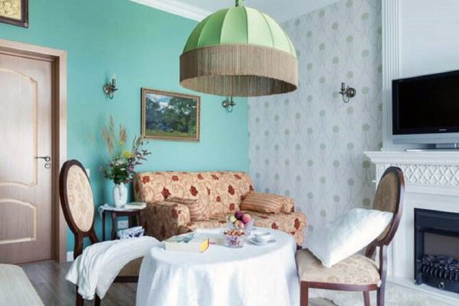 Each room is charming and original in its own way. From household appliances in the rooms there is a refrigerator, kettle, hairdryer. The abundance of decorative elements (candles, tablecloths, paintings, figurines) give the interiors sophistication.