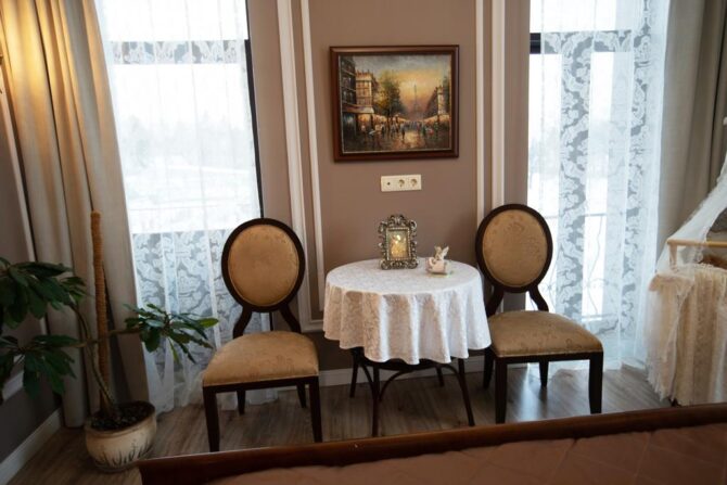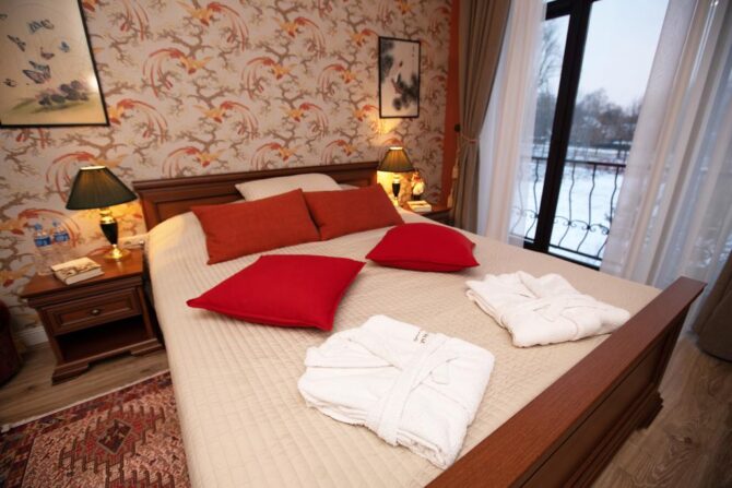 You can stay in the boutique hotel “Dubrovsky” only because of its magical atmosphere, which is created by the interiors, elegant decorative elements and wonderful nature. The staff is customer-oriented. The service is characterized by increased courtesy on the part of the hotel staff. Here everyone is greeted and escorted as welcome guests.