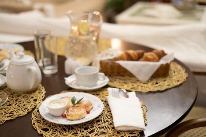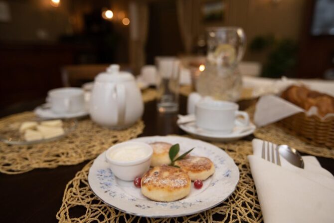 “We lived on the 1st floor and had breakfast respectively in the lobby of the 1st floor. The day before it was possible to choose a drink and 2 hot dishes per person and by the appointed time a very beautiful and generous table was set. Pot-bellied samovar in the center, jam in rosettes, bread basket, butter in porcelain butter! Even a child of 2 years old was covered with a separate portion and still decorated her omelet with a “muzzle” of circles of vegetables. This is a very touching moment” Tatiana, Russia