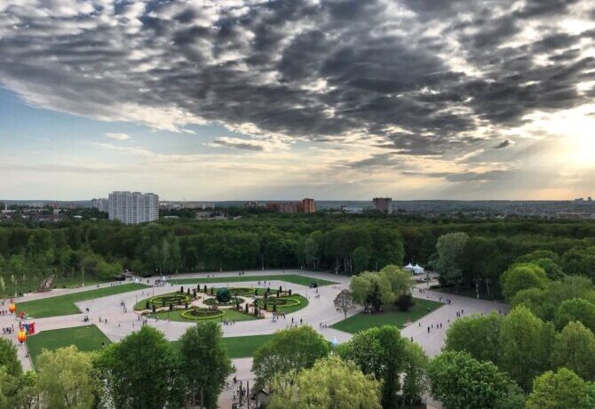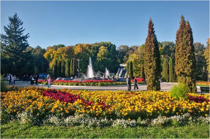 - Central Park of Culture and Recreation. Belousova (2.2 km) is a natural monument and an object of national heritage, one of the ten largest parks in Europe. Here you can stroll along the shady alleys, ride horses, experience delight on the rides. In summer there is a rental of bicycles, boats, scooters. Near the dam of one of the ponds gather fishing lovers. In winter, skating rinks are opened, ski slopes are laid, winter sports equipment rentals work, up to snowmobiles. On the territory there is a mini-zoo, dozens of cafes and eateries.