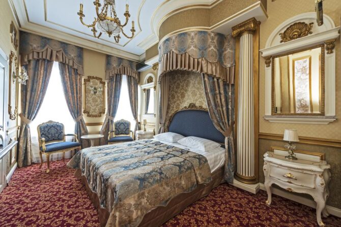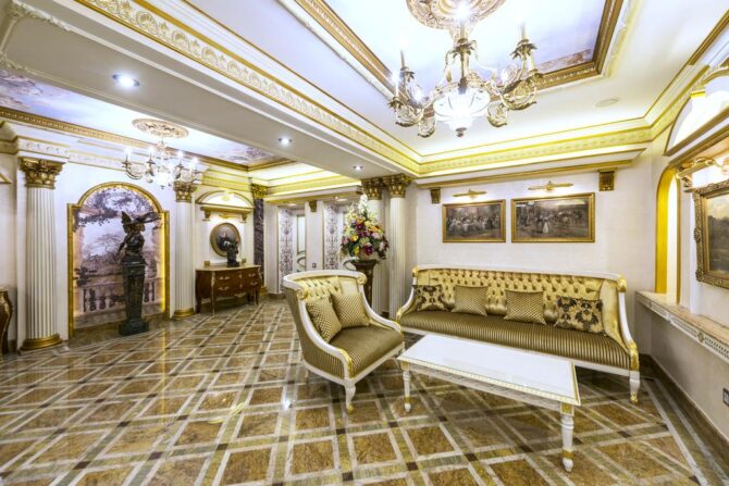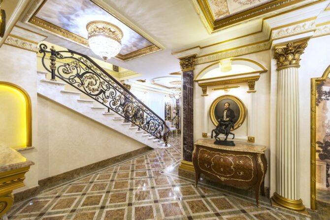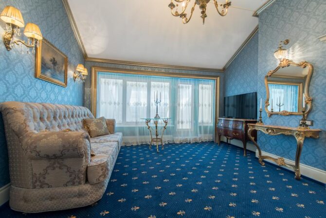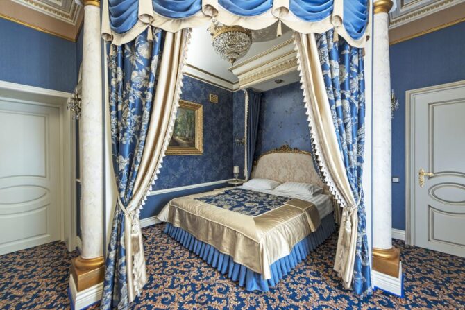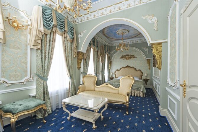 In the 2000s, a complete reconstruction of the historical complex was carried out. As a result, the former merchant house turned into a luxury boutique hotel. Its interiors are designed in the Baroque and Empire styles, the furniture is made to order by Italian masters from the company Chelini. The staff provides a full range of services typical for 5-star hotels.