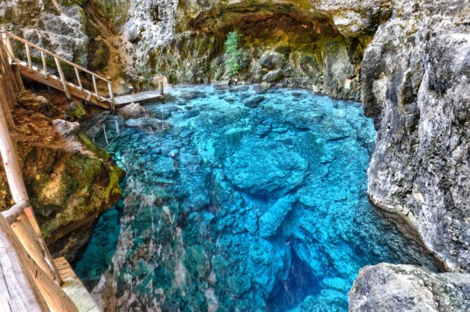 Lagoon Hoyo Claro is one of the visiting cards not only of the Dominican Republic, but also of the entire island of Haiti. This is a place of extraordinary beauty, where tourists try to come for a photo shoot. Unlike beach shots, photos against the background of tropical landscapes will bring more interesting stories to the public. These are stories for “gourmets of natural beauty.” After lunch, there are a lot of people here, so it is recommended to come in the morning.