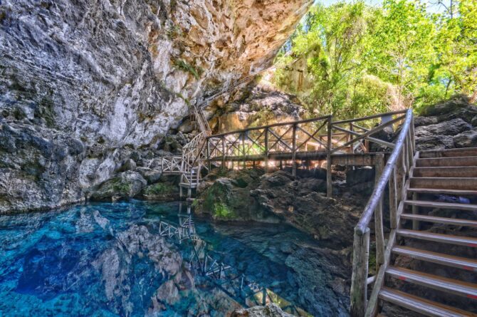 The Indigenous Eyes Ecological Reserve Park is the most beautiful place for walking in the Dominican Republic. A special charm is given to them by 11 lakes with a mirror surface, which seem to observe tourists. In shape, they resemble human eyes, although they are completely created by the forces of nature. Each has its own name, which was invented by the Taino Indians.
