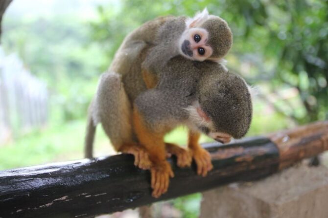 The 5-acre park is home to Saimiri monkeys. It is the most brainy family of primates, whose members are fast as squirrels and friendly as angels. They are happy to meet guests, eat fruit directly from the plate or from their hands. These are small monkeys weighing up to 1 kg with long tails. Very cute and direct animals. They live in large flocks, gathering in groups of up to 100 individuals.