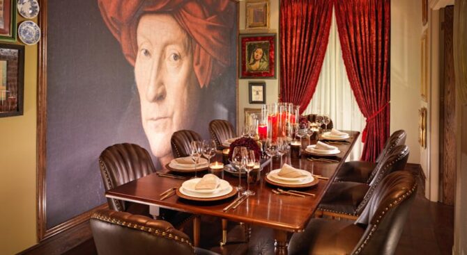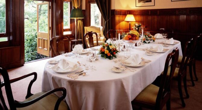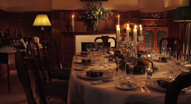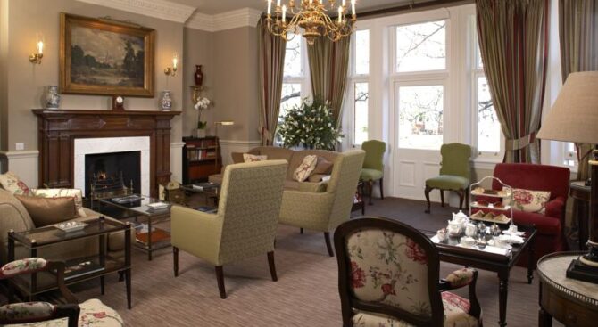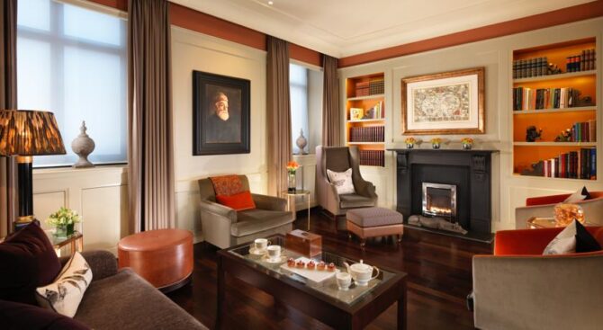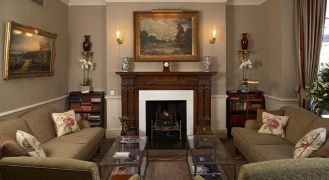 The hotel’s only restaurant is more like an exquisite living room in the house of noble English aristocrats. The interiors use leather furniture with velour finishes of dark tones, many book racks and a large fireplace. It offers classic English cuisine, as well as à la carte breakfasts.