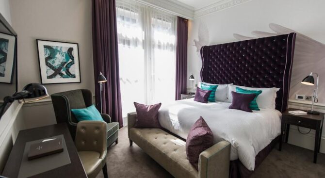 Luxury art hotel in an elegant area of Chelsea. It will be a great place to stay in the capital of Great Britain for those who want to plunge into the atmosphere of London’s historical past. Not only the façade of the building and its halls, but also the rooms are decorated in the style of royal bedrooms and furnished with antique handmade furniture. It features satellite TV, air conditioning and a comfortable work area with a desk.