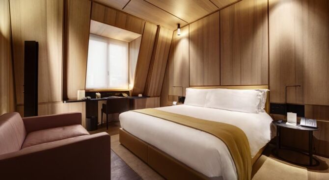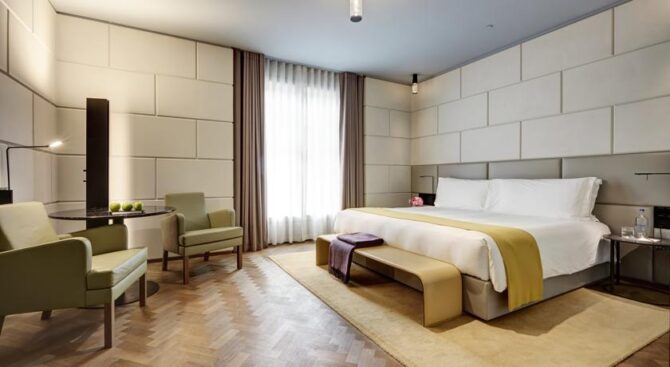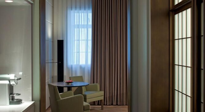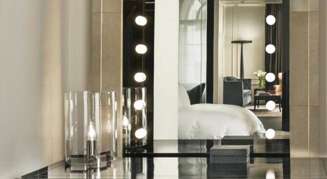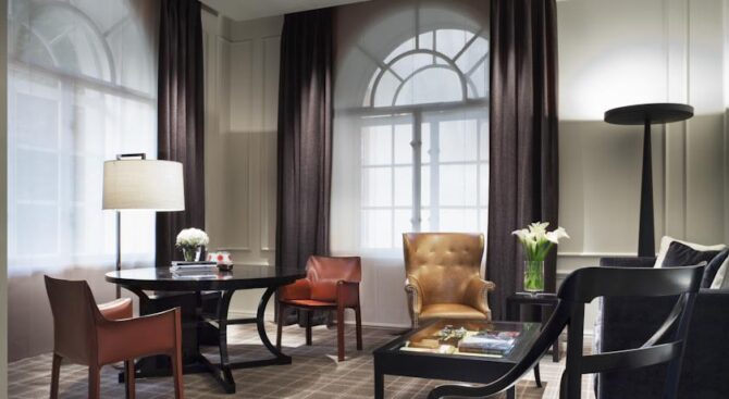 The location of the hotel is High Holborn Street, within walking distance of the trendy boutiques and shops on Covent Garden and Oskford Street. Rosewood occupies an architectural historic building, and its interior design continues the delightful design history of the façade. Rooms are decorated with handmade furniture and Italian marble bathrooms.
