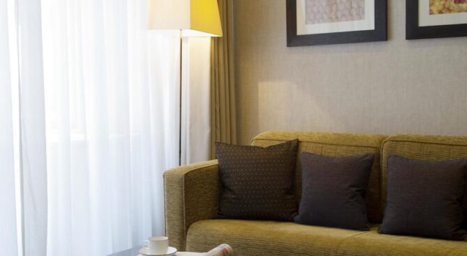 The hotel has a large number of executive suites, which have not only a separate bedroom, but also an equipped kitchen and a living room. The bathroom is decorated with marble slabs, equipped with a bath and accessories necessary for the adoption of water procedures.