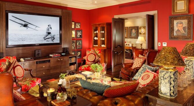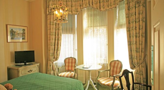 The interior of each room is unique. In the design of the rooms, designers used bright, colorful wallpaper with a large pattern, heavy fabrics with draperies and fringe, bright accents and paintings. All rooms are equipped with functional appliances, and the elegant atmosphere in the bathrooms is emphasized by marble tiles and original plumbing.