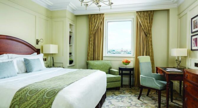 The Four Seasons hotel has restaurants and bars, as well as a comfortable lounge area with soft sofas and elegant interiors. In the mornings, guests can go down to breakfast, which includes traditional English and Irish cuisine, as well as in-room dining. Meals in the hotel are provided by an Italian restaurant, which serves both world-famous pizza and pasta, as well as author’s delights from the chef.
