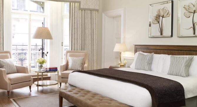This large luxury hotel is located in one of the most prestigious areas of London. The rooms are represented by spacious rooms and suites with panoramic windows, magnificent design and comfortable furniture. Choosing to stay in the capital of Great Britain this famous hotel, guests get into the atmosphere of aristocratic sophistication, which is combined with modern functionality.