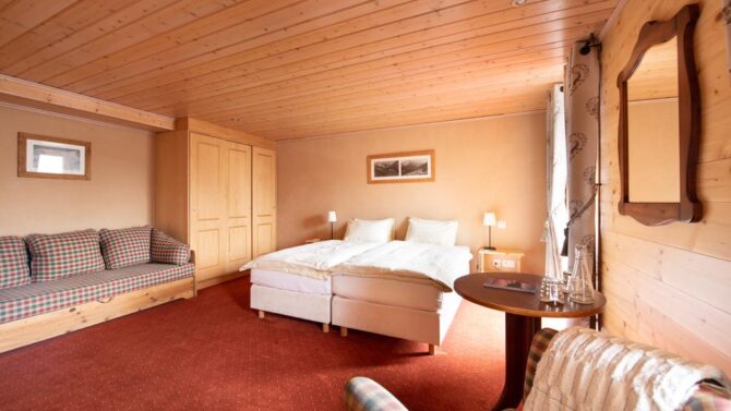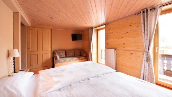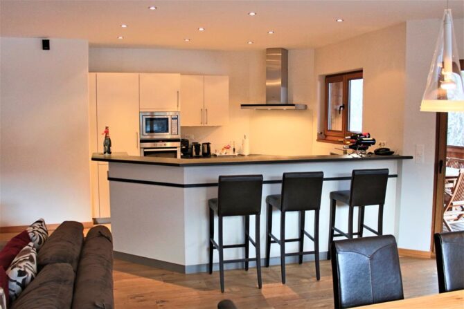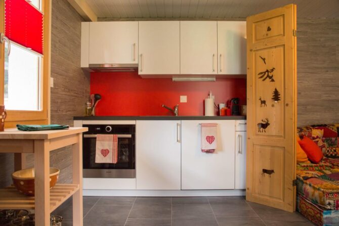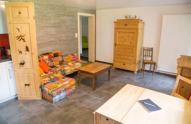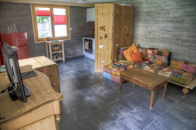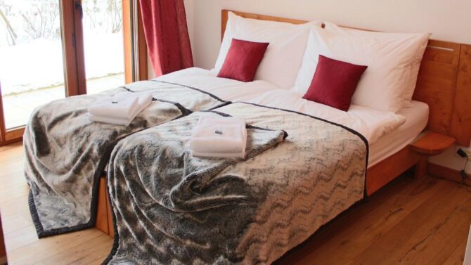 The apartment is equipped with two bedrooms and a living room. Here comfortably can accommodate a family or a company of 4 to 6 people. At the request of the guests, the hostess of the institution will provide local products: wine, meat, as well as raclette – the Swiss national dish.