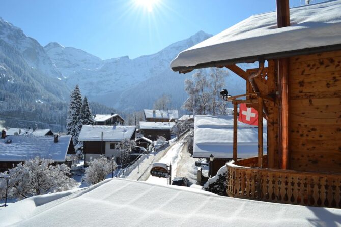 Cozy evening in a typical Swiss chalet